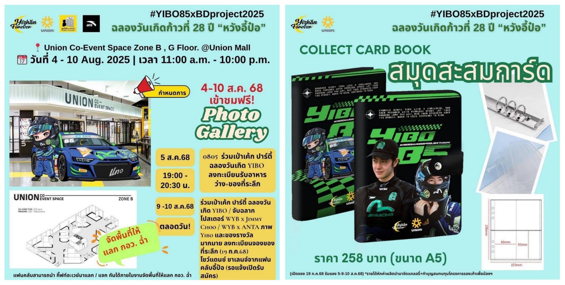 พลังรักแห่งแฟนคลับ “หวังอี้ป๋อ” โดยกลุ่ม YiZhan Forever TH Fans ร่วมกับ UNION MALL และแบรนด์ ANTA Thailand และ SF CINEMA จัดกิจกรรมแฮปปี้เบิร์ดเดย์ ฉลองก้าวที่ 28 ปี “หวังอี้ป๋อ” มอบรองเท้านี้เพื่อน้องในถิ่นทุรกันดาร ให้กับมูลนิธิกระจกเงา งานนี้จัดระหว่างวันที่ 4 – 10 สิงหาคม 2568 มีกิจกรรมมากมายให้เหล่าเอฟซี หวังอี้ป๋อ นักแสดงหนุ่มสุดหล่อแดนมังกรได้มาเอนจอยในอีเวนต์สุดปังแห่งปี กิจกรรมเยอะฉ่ำ ๆ เริ่มตั้งแต่